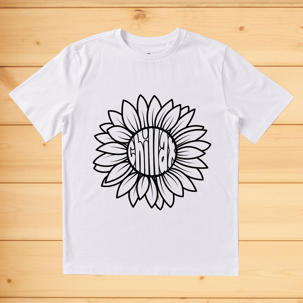 Introducing our 🌻 Chillax 🌻 Colour-In T-Shirt! This laid-back design features a bold sunflower outline with the word “Chillax” blooming at its center—a reminder to stay cool and enjoy the moment. Perfect for artists of all ages, this shirt comes with a 10-piece marker set for endless colour combinations that can be washed out and re-coloured anytime.