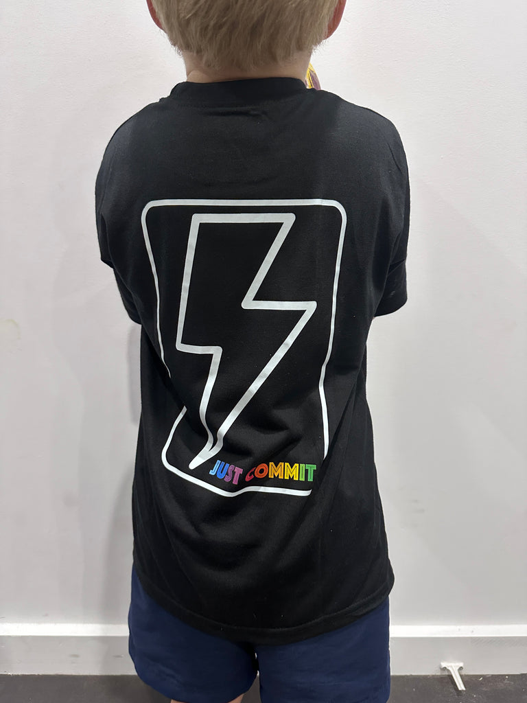 This shirt is all about big vibes and bigger energy!⚡ Designed to inspire, the bold energy icon on a sleek black canvas makes a powerful statement. The rainbow-coloured Just Commit text is a nudge to take on the day with confidence and creativity. 🌈