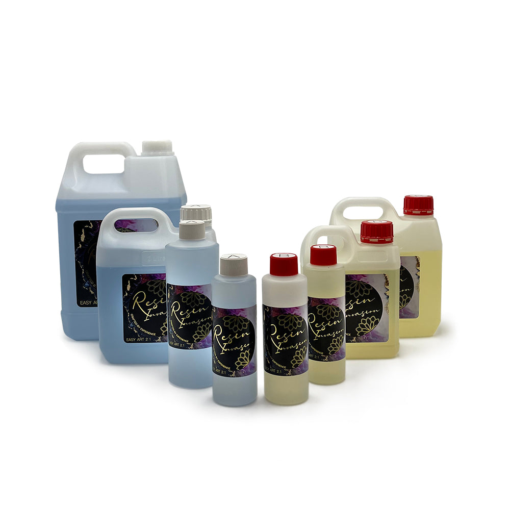DIY Invasion's resins have been carefully crafted to a high quality, high gloss clear epoxy resin that is super easy to work with. Resin Invasion resins work well with a wide range of colours including Pigment Pastes, Pearlescent Powders, Mica Powders, Alcohol Inks & Dyes.